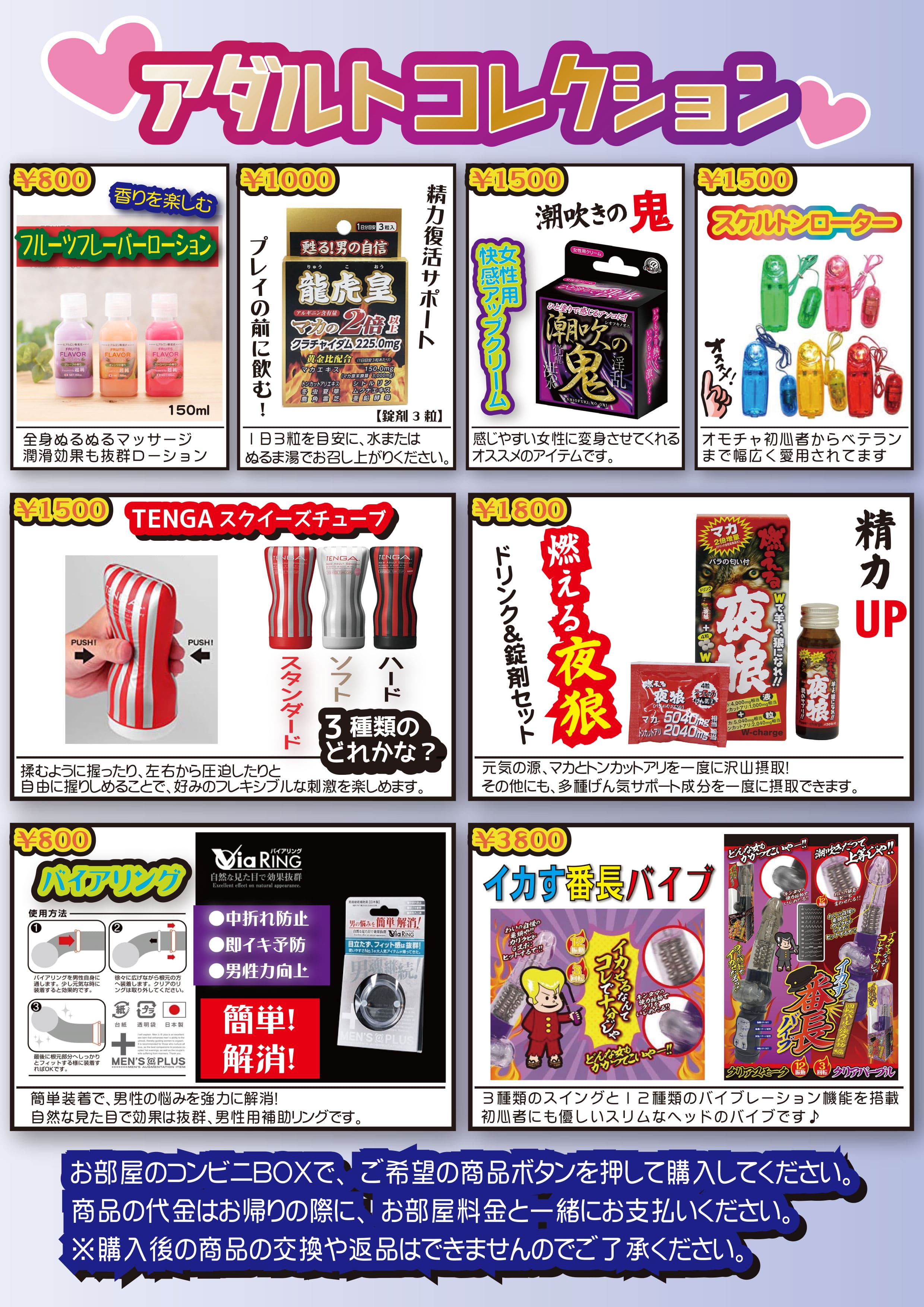豊富なフードメニュー、女性に嬉しいアメニティを多数ご用意しております。
